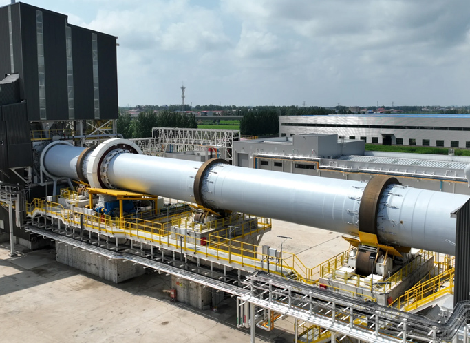A rotating cylindrical furnace used for high-temperature processing of materials such as cement, minerals, lime, and waste treatment.