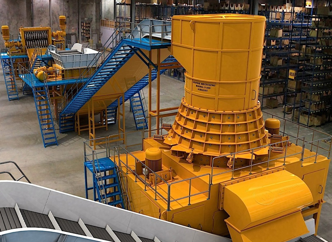Industrial machine used to cut, tear, or crush materials into smaller pieces for recycling, waste management, or material processing.